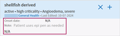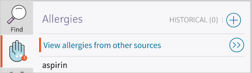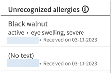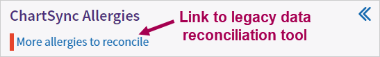 | More allergies to reconcile | Reconcile allergies from other sources through the legacy data reconciliation tool. The link appears at the top of the Allergies tab. |