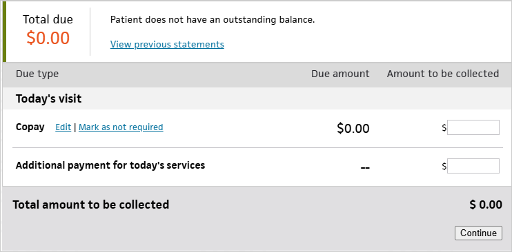 In this view, there is no field to mark the copay as not required. If the copay is not required, you can just collect $0.