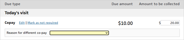 If you collect a different copay amount, you must select a Reason for different co-pay: