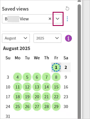 You can select new calendar views from the drop-down list in the top right corner of the screen.