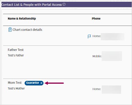 Tip: The contact assigned as the guarantor always appears after the first row unless the guarantor is the primary contact or the patient themselves.