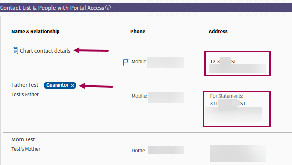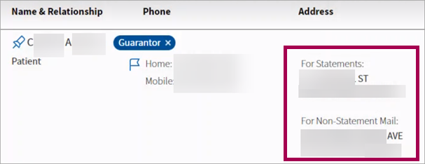 For non- patient guarantors, only a single address can be collected and stored and both statements and non-statement mail will be sent there.