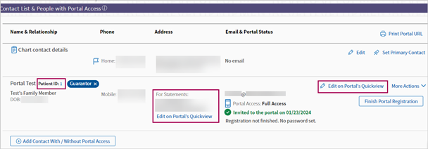 You can now see, edit, and add Patient Portal access to the guarantor from one location: the Contact List. We're making this change to save you time and manual work when managing this information.