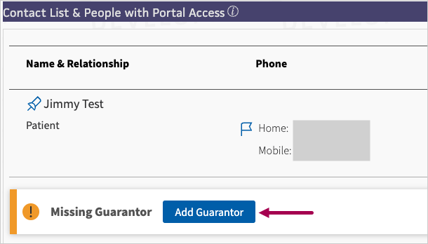 Now, the guarantor for the patient appears as a label that you can quickly see right in the Contact List section.