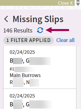 - Date of service — Enter or select a date range for the missing slips.