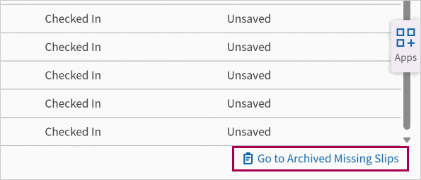 The Missing Slips page opens in the Workspace. - Appointment Status — Select Checked In or Checked Out.