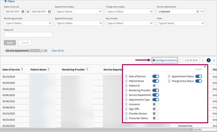 | Click Configure Columns to set which columns appear. The columns you select now persist when you return to the page. Your previously configured columns will remain in place, saving you time and effort. |