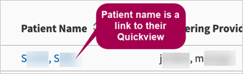 Patient names are linked to their Quickview, which lets you quickly access the patient's Quickview page