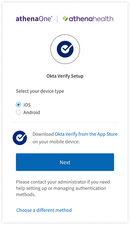 Following are the steps that you will perform to set up Okta Verify as an additional authentication method for athenaOne login: