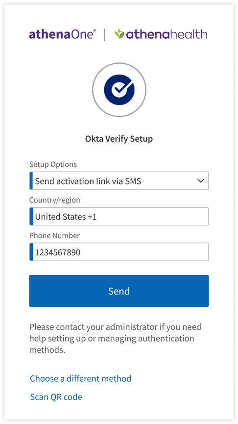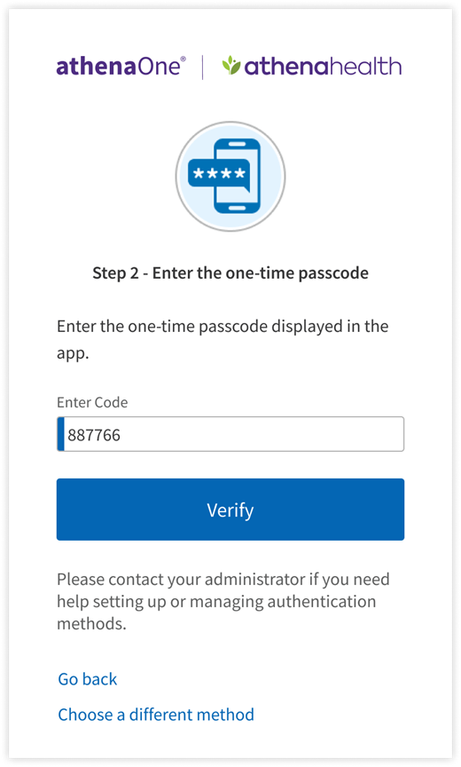 MFA for athenaOne supports four authentication methods in addition to a user’s password: