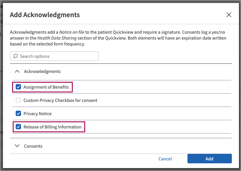 | Legal | This field appears if the patient has added a case policy that is classified in the "legal" category. | ||||||||||||||||||||||||||||||||||||||||||||||||||||||||||||||||||