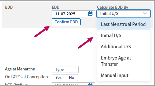 | Initial U/S | Uses the date in the Initial U/S field—the initial ultrasound date—to calculate the EDD. |