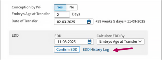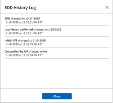 Click EDD History Log to check for changes made to a patient's EDD information.